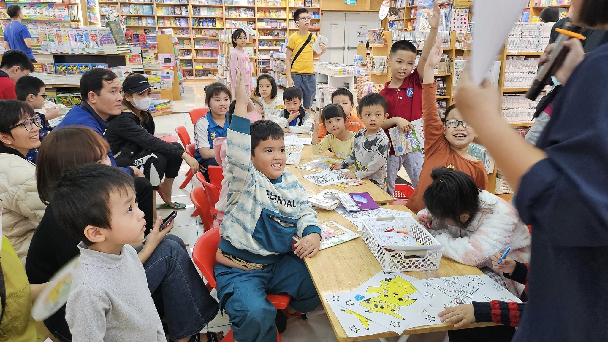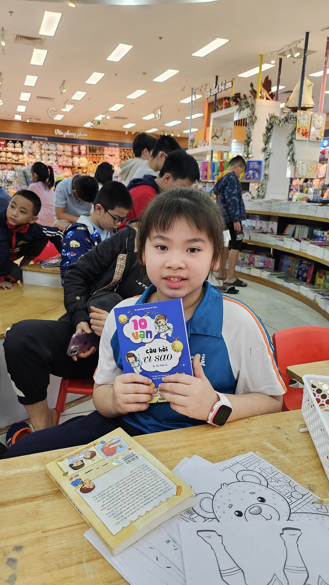 Tham gia workshop, các bé đã cùng được tìm hiểu về sự kỳ bí của Vũ Trụ thông qua những cuốn sách từ Đinh Tị Books như: Vũ trụ siêu đẳng, Bách khoa kỳ thú về vũ trụ, 10 vạn câu hỏi vì sao – Vũ trụ thần bí, Cuốn sách khổng lồ về các ngôi sao và hành tinh, Cuốn sách khổng lồ về các thiết bị vũ trụ…..Các bé đã vô cùng ngạc nhiên về những thông tin ở ngoài vũ trụ xa xôi cũng như những sự thật mà chưa hề được ai nhắc tới qua các câu đố vui từ chương trình. Vậy mới thấy rằng, còn rất nhiều chúng ta chưa biết có thể tìm hiểu thông qua những cuốn sách!