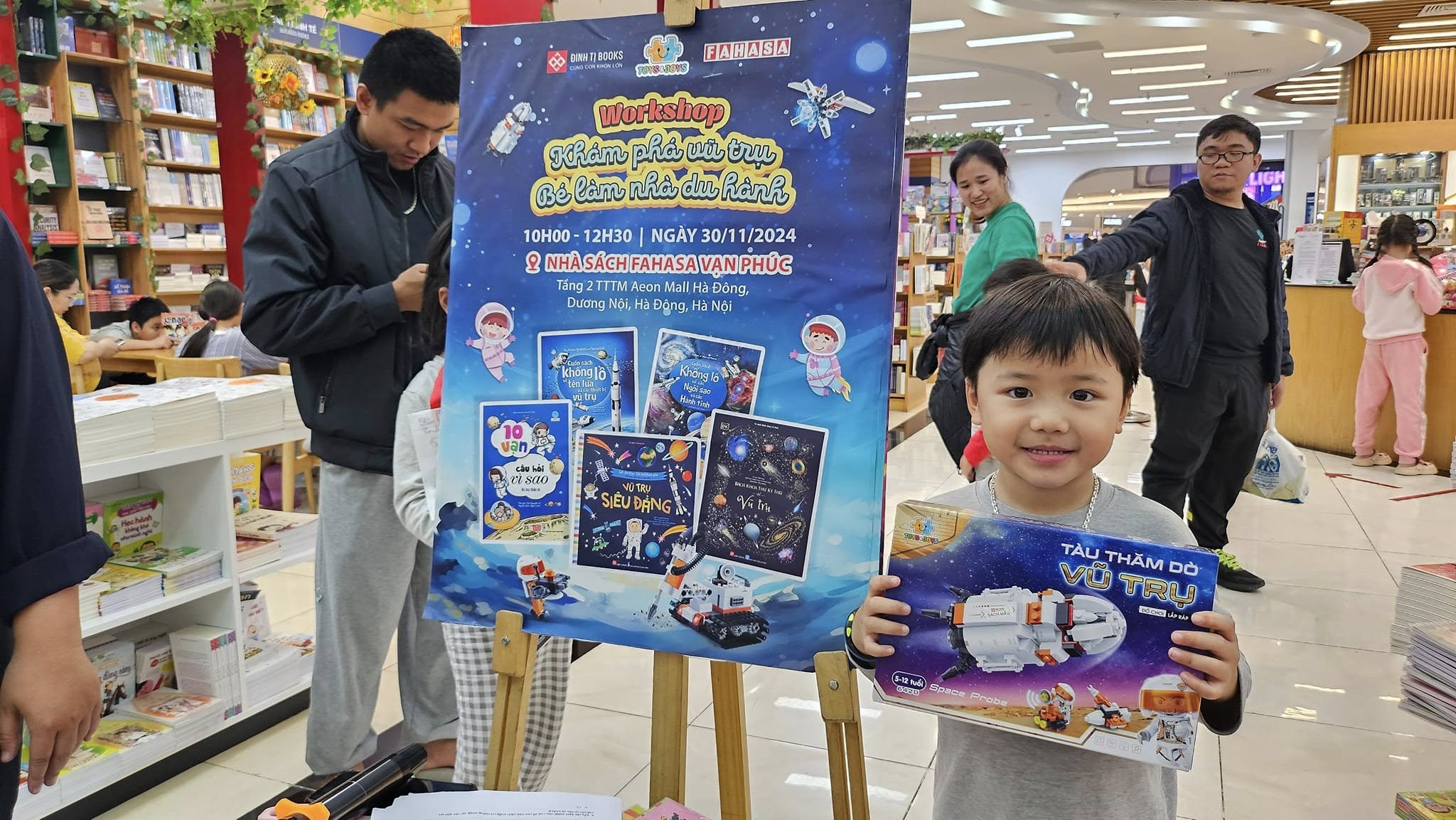Workshop “Khám phá Vũ Trụ – Bé làm nhà du hành” tháng 11 đã khép lại tại Nhà sách Fahasa Vạn Phúc – Aeon Mall Hà Đông, thế nhưng độ hot vẫn chưa hề hạ nhiệt. Cảm ơn sự hưởng ứng nhiệt tình của ba mẹ và các bé, đã góp phần tạo nên một buổi workshop tràn ngập niềm vui và tiếng cười.