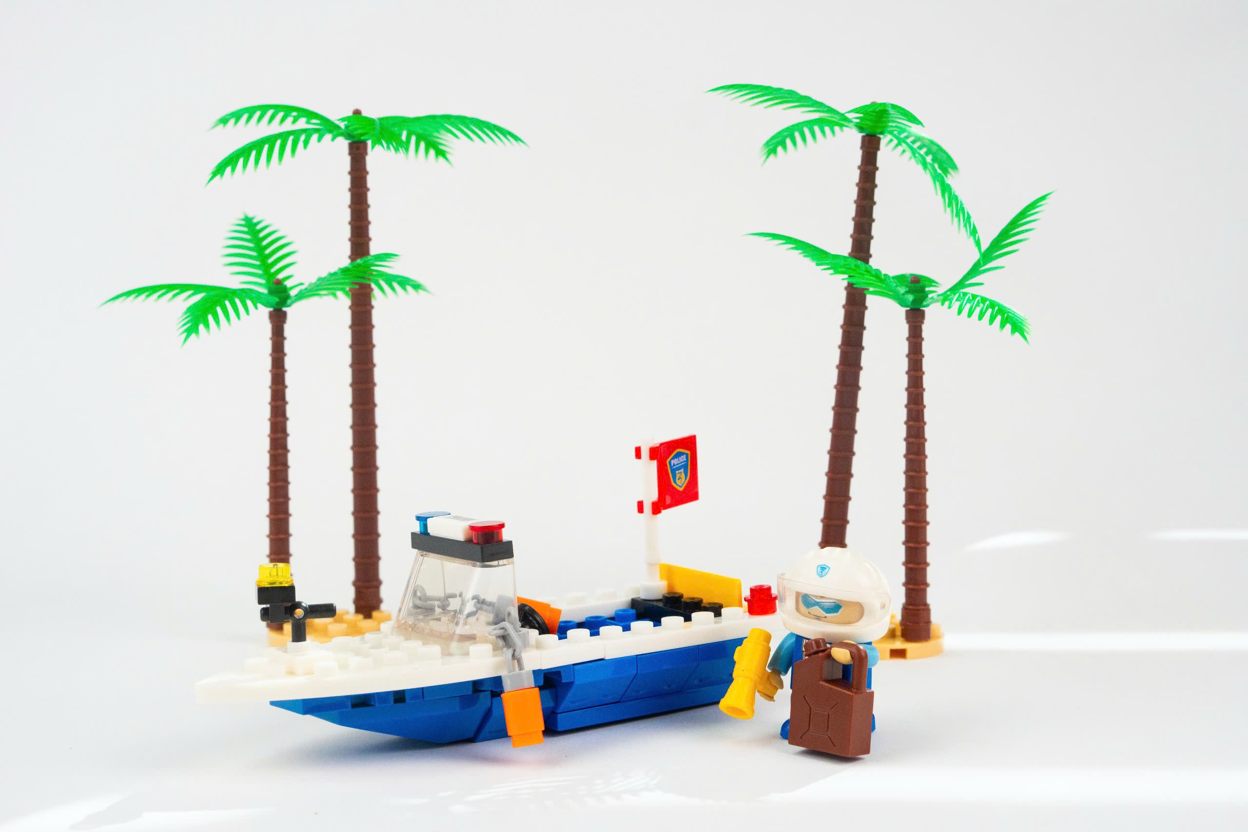 Không chỉ được đóng vai phi công, bé còn có thể trở thành những chú cảnh sát biển với Đồ chơi lắp ráp Tàu cao tốc cảnh sát – Police Speedboat. Sản phẩm với miếng ghép to, khá đơn giản, phù hợp với các bé từ 4 tuổi và 58 miếng ghép. Nếu bé mới tập làm quen với bộ môn lắp ghép, ba mẹ nên tham khảo cho bé chơi sản phẩm này.