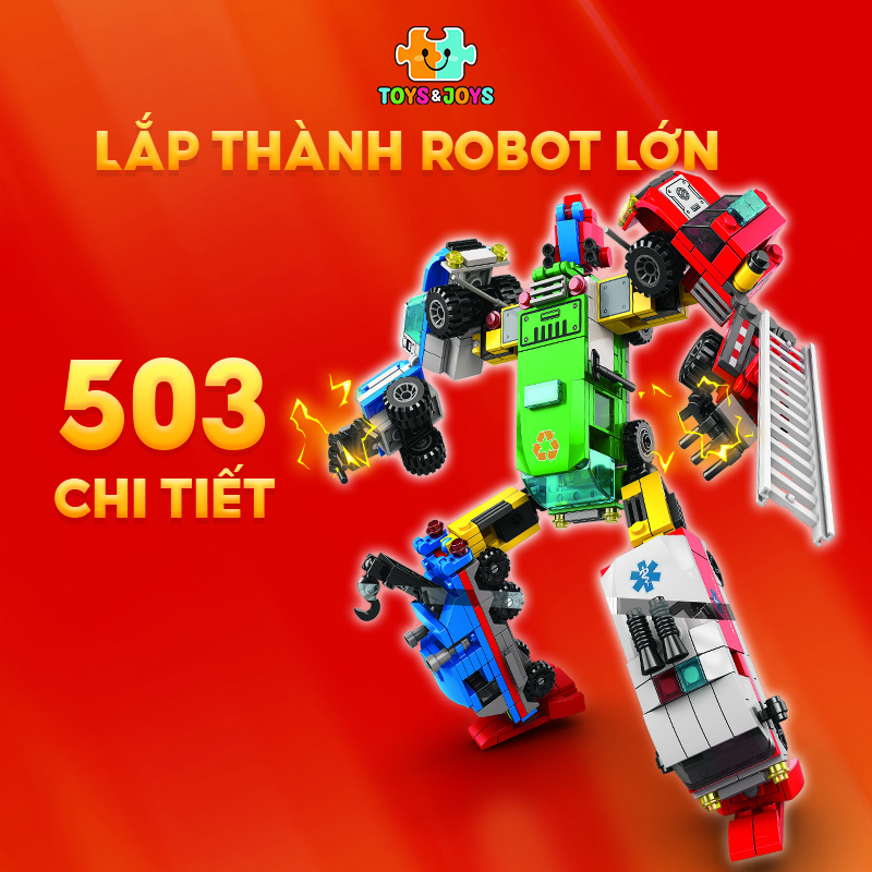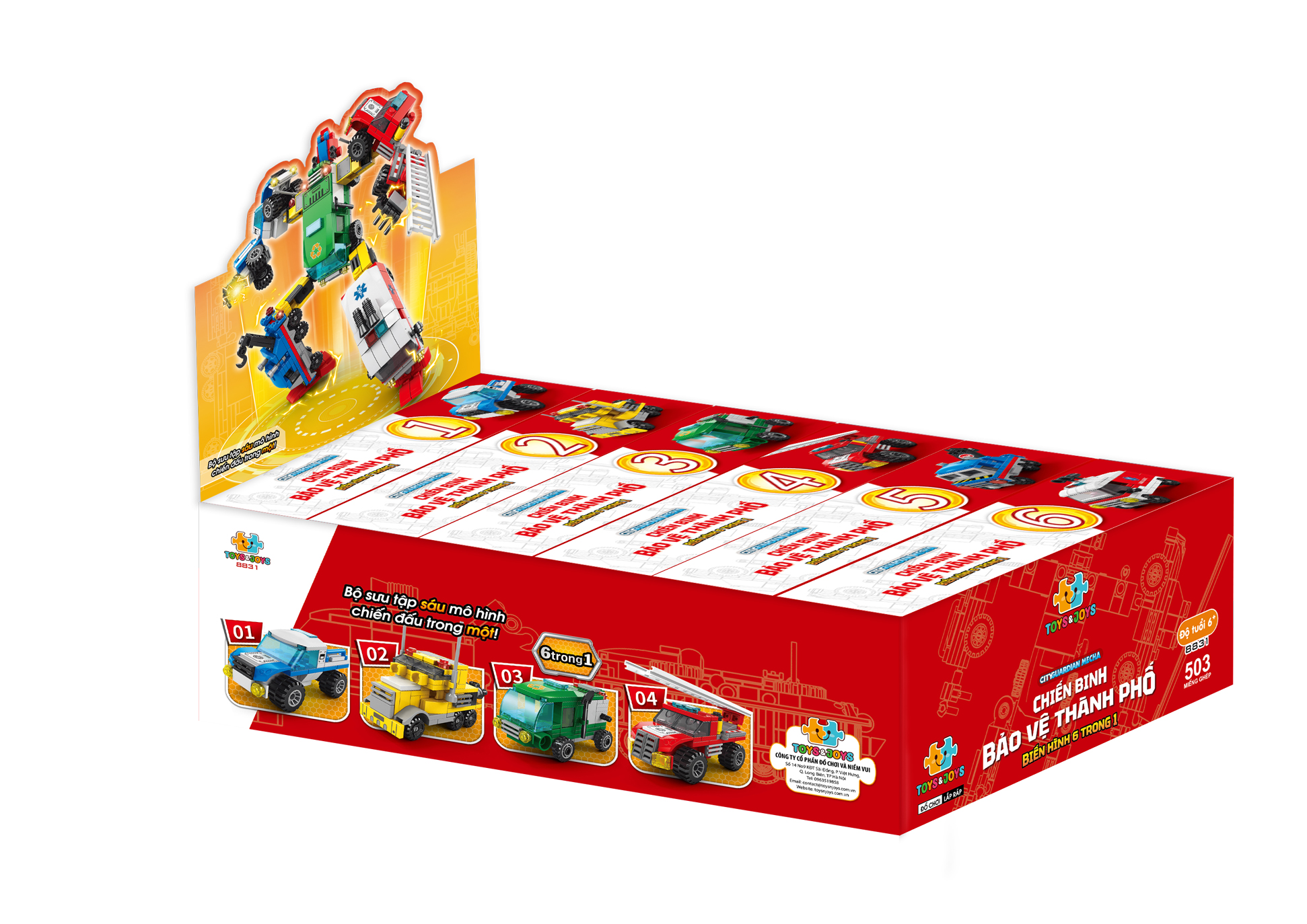 - Mô hình: 6 xe nhỏ (cứu hộ, cứu hỏa, cảnh sát) hoặc 1 robot lớn.