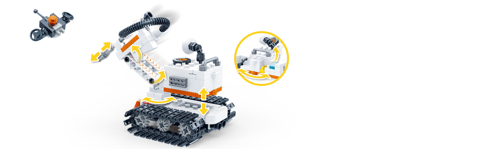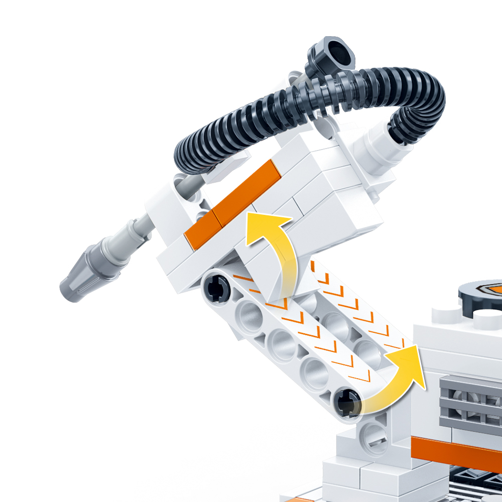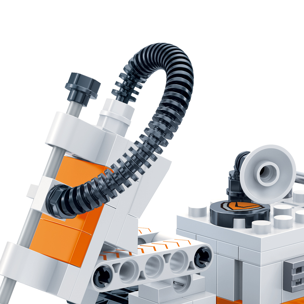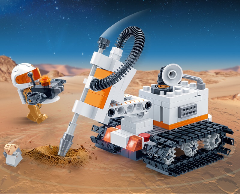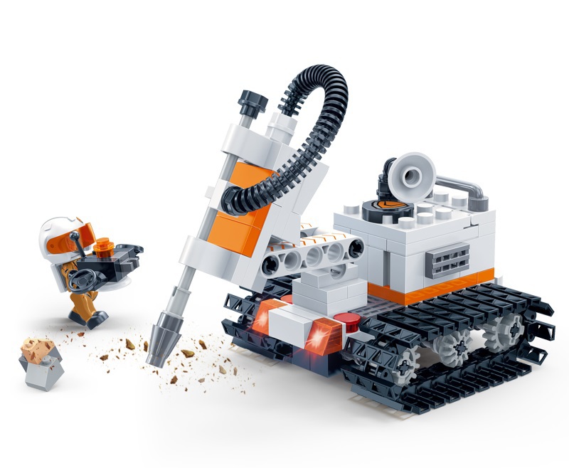 Bộ sản phẩm gồm 170 miếng ghép với chất liệu nhựa ABS an toàn cho sức khỏe và đạt chuẩn ASTM, CE. Sản phẩm hoàn thiện gồm 3 mô hình: máy thám hiểm, radar và nhân vật phi hình gia với 4 tùy chọn chơi: