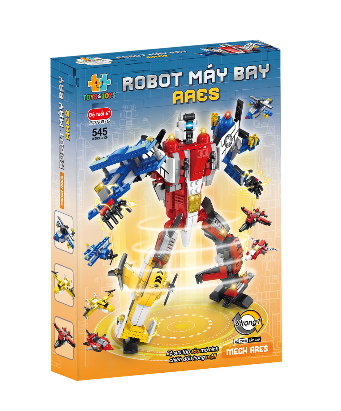 Bé có thể lắp ghép riêng để tạo nên 6 mô hình hoặc ghép lại thành Robot máy bay Ares khổng lồ. Khi hoàn thiện bé sẽ vô cùng ngạc nhiên với dáng dấp của robot đó: