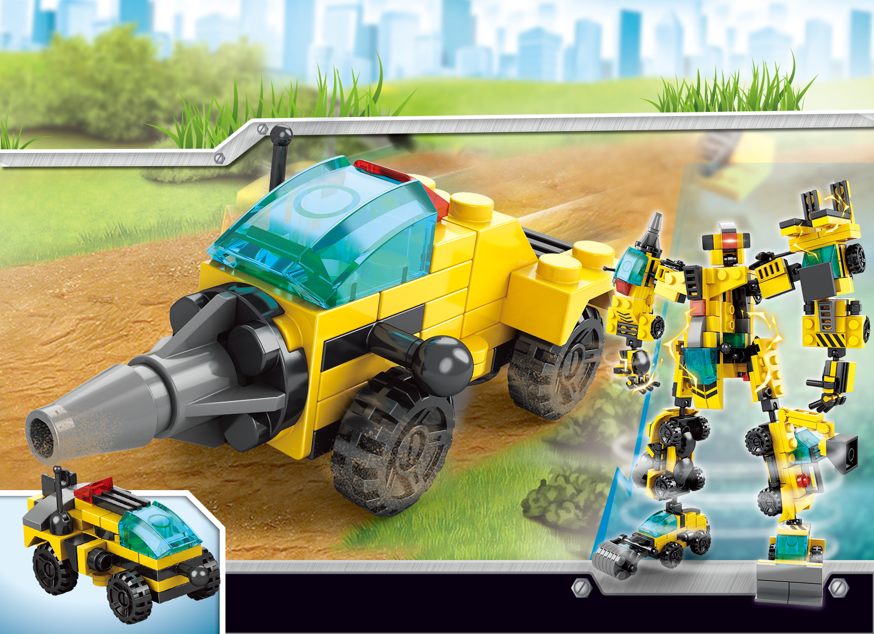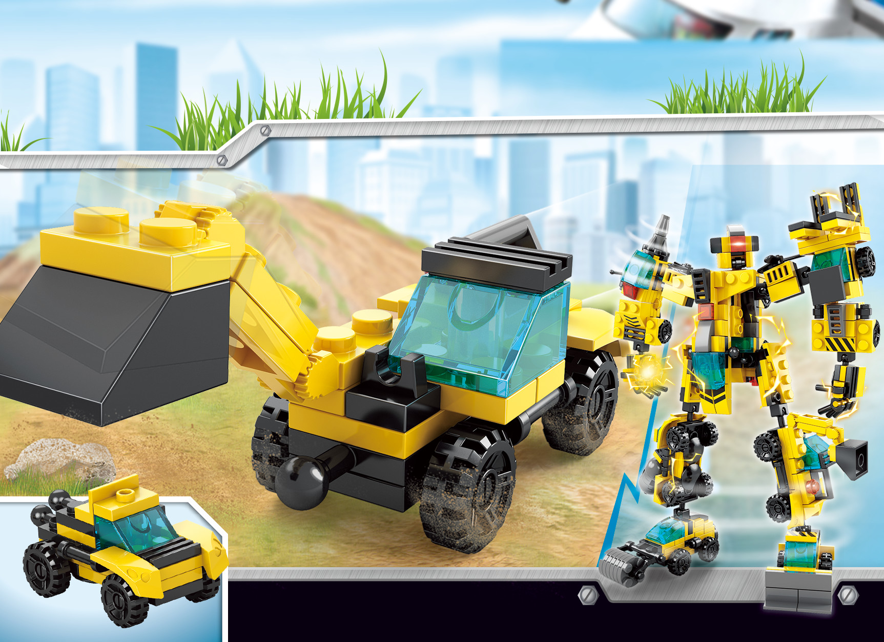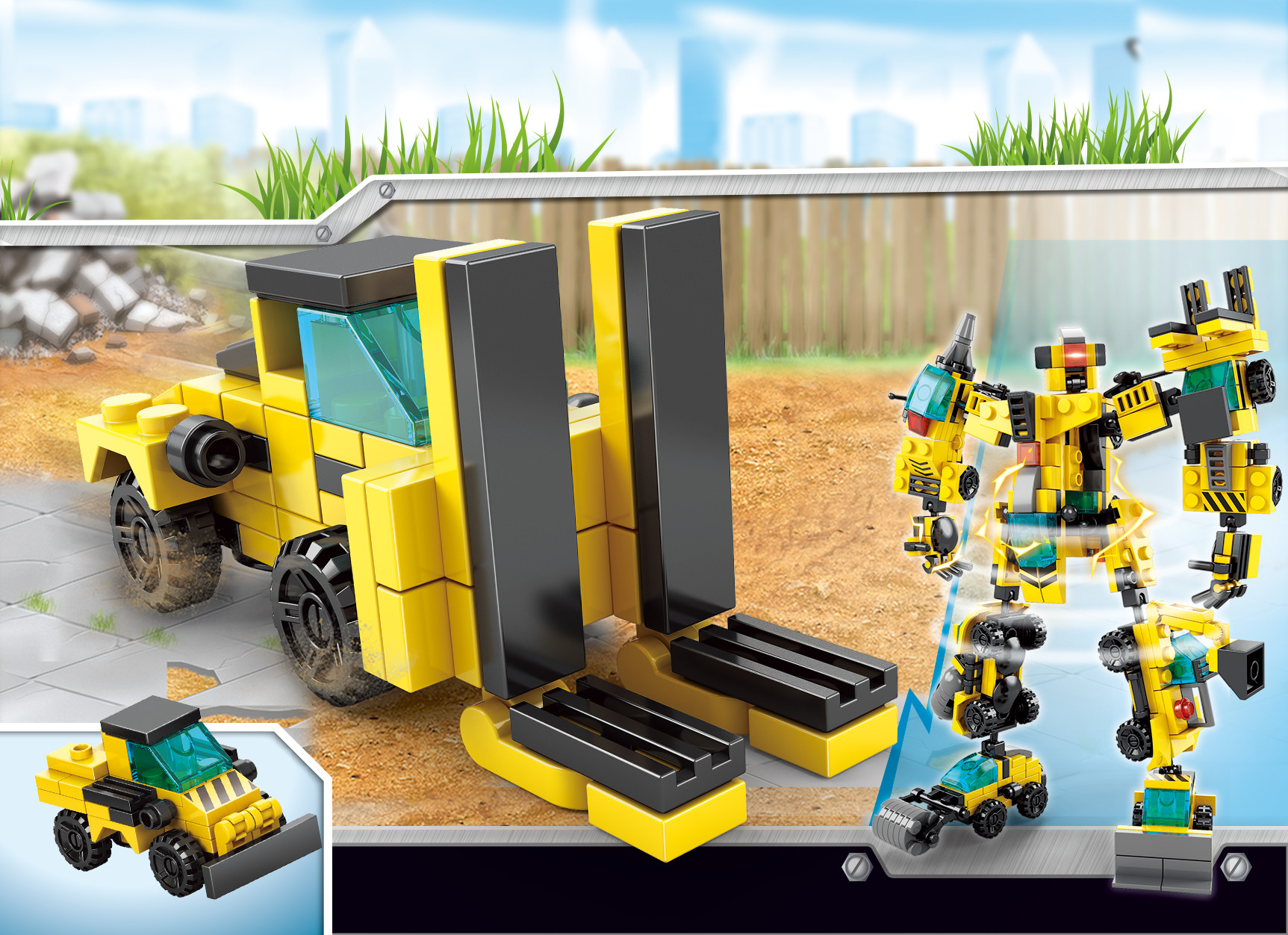 Bé có thể lắp ráp từng xe công trình riêng lẻ để chơi theo cách truyền thống hoặc biến đổi thành siêu robot để tạo ra một nhân vật mạnh mẽ, sẵn sàng tham gia vào những nhiệm vụ khó khăn nhất!