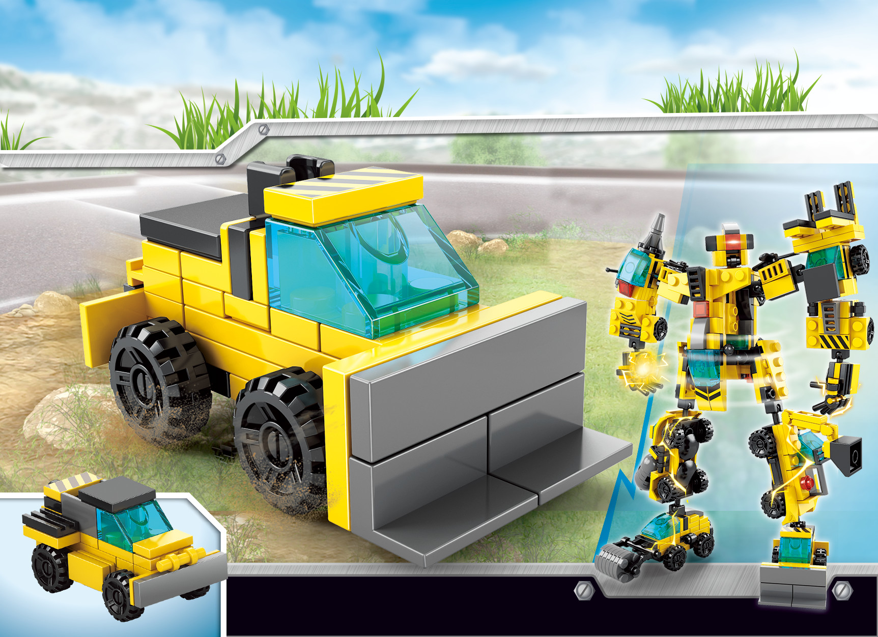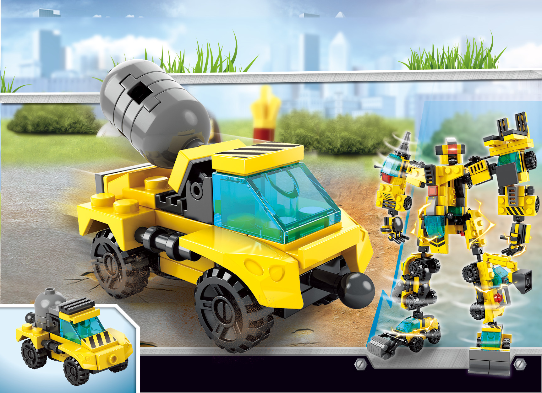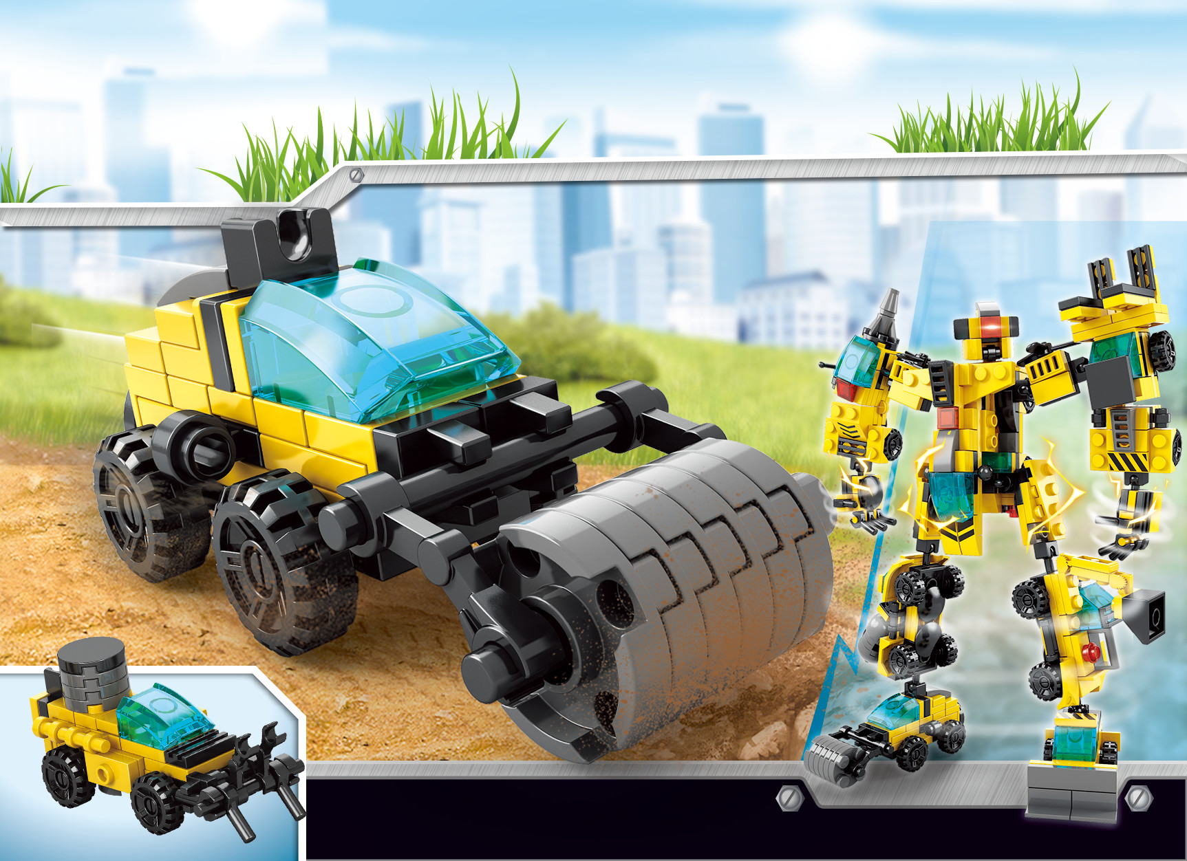 Bé có thể lắp ráp từng xe công trình riêng lẻ để chơi theo cách truyền thống hoặc biến đổi thành siêu robot để tạo ra một nhân vật mạnh mẽ, sẵn sàng tham gia vào những nhiệm vụ khó khăn nhất!