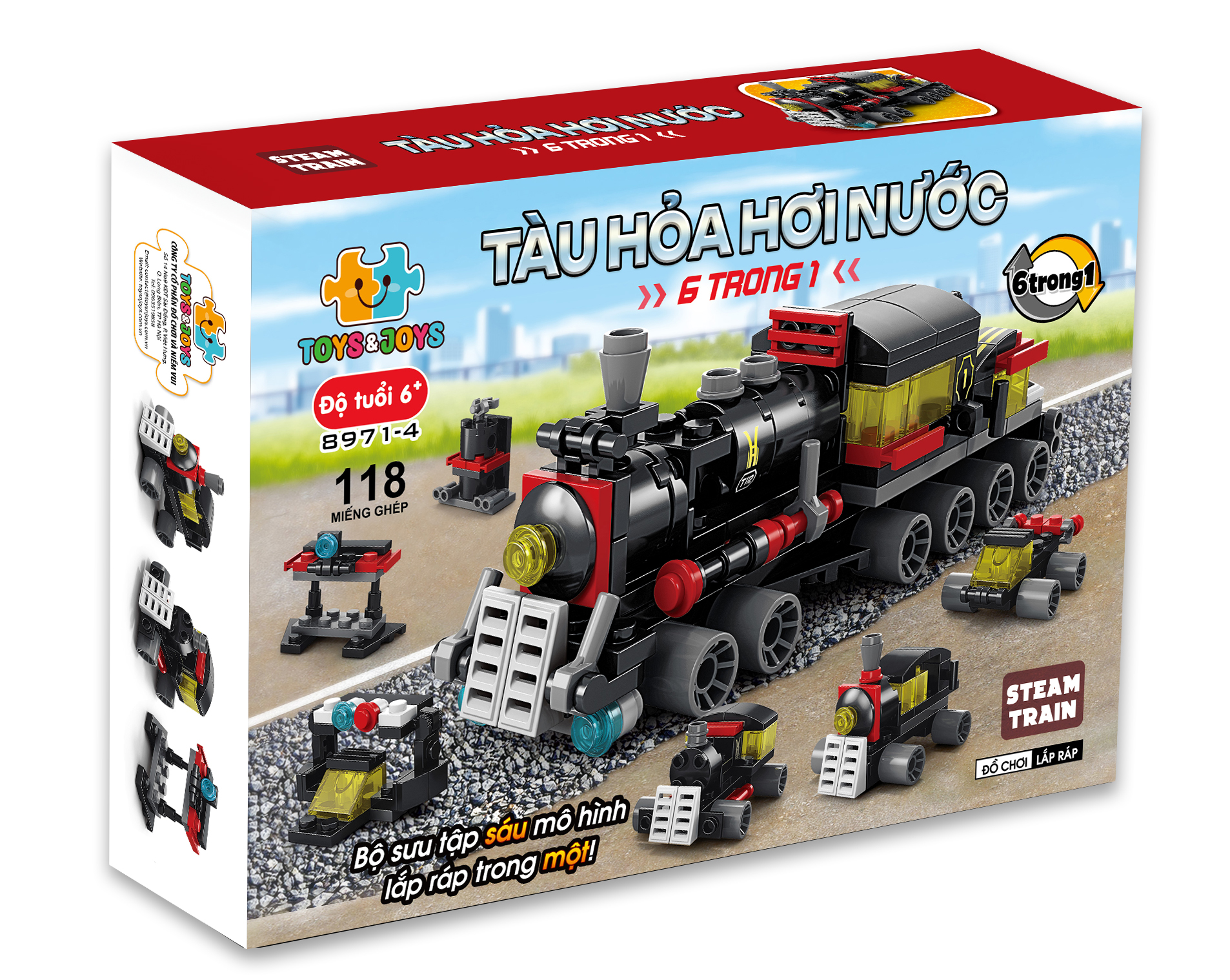 Tàu hỏa hơi nước 6 trong 1 – Steam Train là bộ đồ chơi lắp ghép 6 trong 1, tái hiện các xe cứu hộ thành robot bảo vệ thành phố, khơi dậy tinh thần anh hùng cho trẻ từ 6 tuổi. Với 503 miếng ghép, trẻ có thể lắp 6 xe nhỏ hoặc ghép thành robot lớn, mang đến trải nghiệm chơi đầy thú vị!