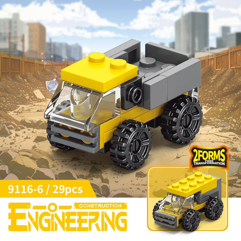 Toàn bộ xe công trình được trang bị bánh xe cao su thật, giúp xe dễ dàng di chuyển, mang lại trải nghiệm tuyệt vời cho trẻ. Miếng ghép làm từ nhựa ABS an toàn tuyệt đối cho trẻ nhỏ, đạt tiêu chuẩn Châu Âu: CE, EN71. Chi tiết miếng ghép phù hợp cho trẻ trên 6 tuổi, các bé có thể dễ dàng lắp ghép nhờ vào sách hướng dẫn kèm trong hộp sản phẩm.