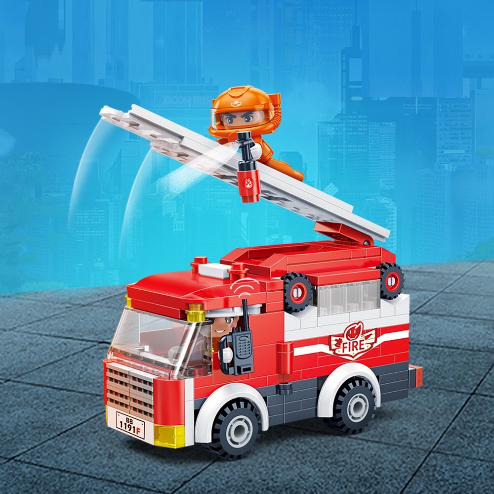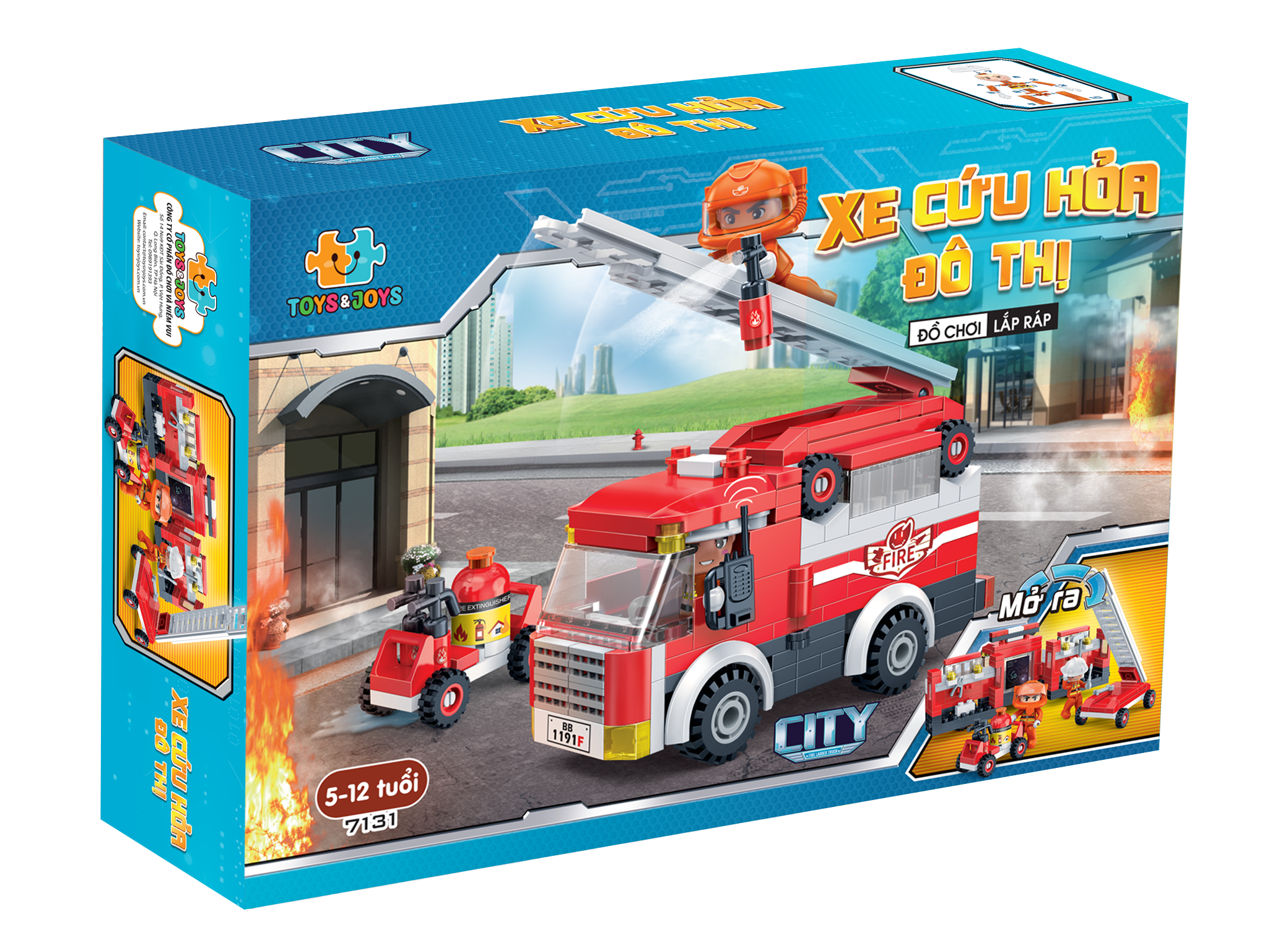 Xe cứu hỏa đô thị – City Fire Ladder Truck gồm 1 mô hình xe chính và 2 nhân vật lính cứu hòa với 4 tùy chọn chơi:
