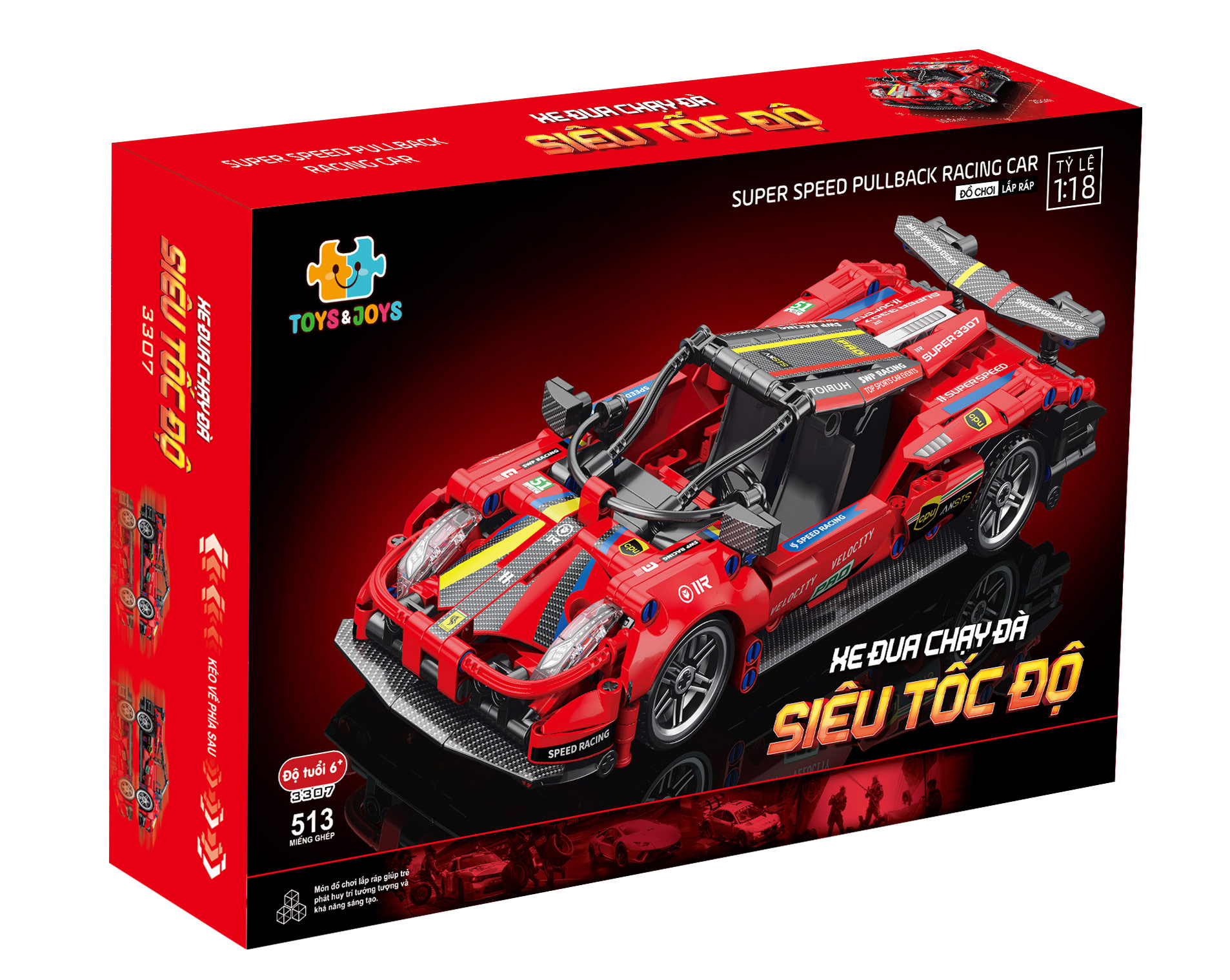 Sản phẩm Xe đua chạy đà siêu tốc Toys&Joys với số 513 miếng ghép, phù hợp cho các bé trên 6 tuổi. Chất lượng miếng ghép cao cấp từ nhựa ABS an toàn tuyệt đối cho trẻ, đạt tiêu chuẩn quốc tế của Châu Âu: CE và EN71.