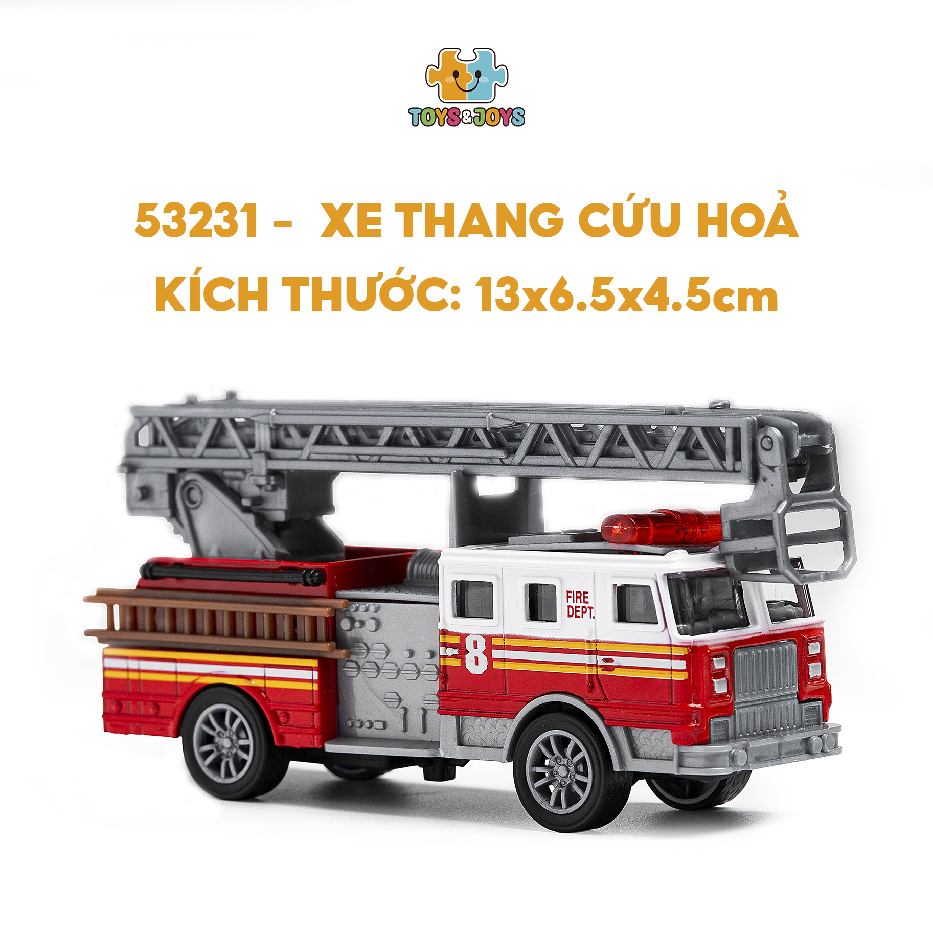 Xe thang cứu hỏa đồ chơi được mô phỏng sống động từ xe cứu hỏa thật, với màu đỏ đặc trưng, logo cứu hỏa nổi bật và thang kéo dài linh hoạt. Sản phẩm mang đến cho bé trải nghiệm nhập vai lính cứu hỏa, vừa vui chơi vừa học kỹ năng ứng phó khi có tình huống khẩn cấp.