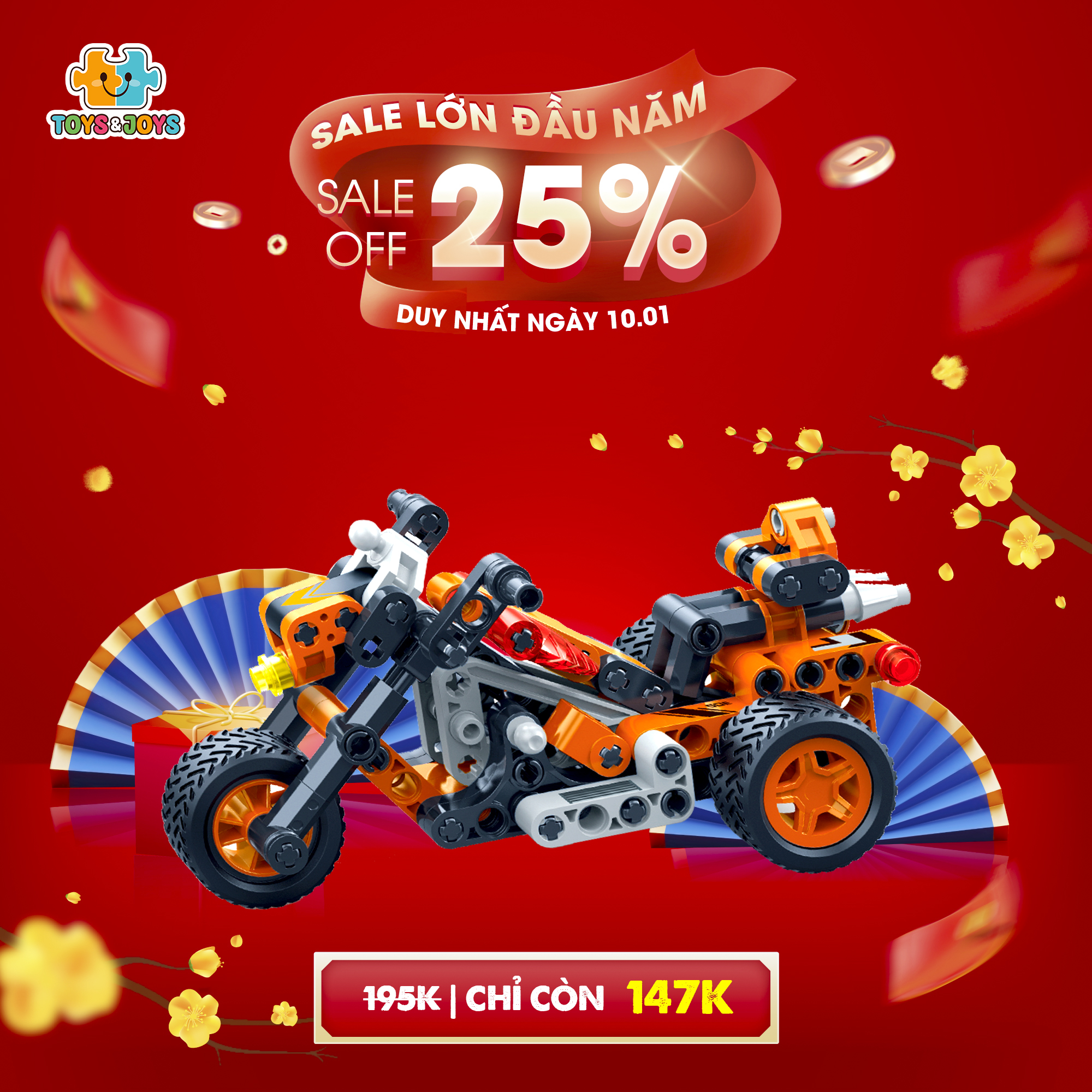 Tết đến xuân về, thời điểm hoàn hảo để cha mẹ dành tặng con yêu những món quà vừa vui chơi giải trí vừa phát triển tư duy sáng tạo. Toys&Joys, thương hiệu đồ chơi đạt tiêu chuẩn an toàn quốc tế, mang đến chương trình khuyến mãi đặc biệt giảm ngay 25% cho hàng loạt sản phẩm lắp ráp siêu hấp dẫn. Hãy cùng khám phá và lựa chọn ngay!