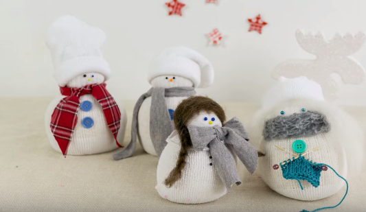 Một trong những món đồ chơi Giáng sinh handmade đơn giản và đáng yêu chính là người tuyết bông. Bạn có thể sử dụng vải nỉ, bông gòn, và các phụ kiện nhỏ xinh để tạo nên một người tuyết đáng yêu.